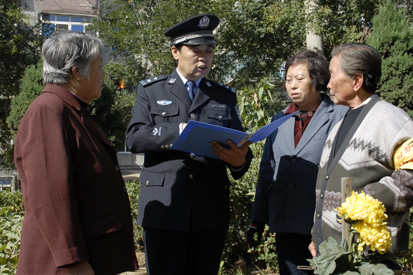 有一次走訪,安明看到社區(qū)里一群人正圍著一個躺在地上的老太太。當(dāng)穿著警服的安明走過去時(shí),幾乎所有人的目光都聚集在他身上。一問才知是老太太因?yàn)槟X出血住院,出院后兒子卻躲了起來。安明和社區(qū)干部一起找到不肯露面的老人兒子,并最終解決了老人的贍養(yǎng)費(fèi)問題。