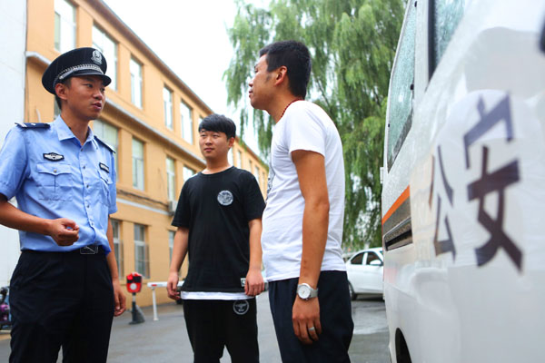 8月28日,丹東市公安局振興分局站前派出所所長(zhǎng)金橋在調(diào)解治安案件