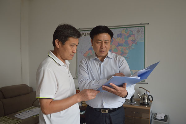葫蘆島市委政法委常務(wù)副書記、市維穩(wěn)辦主任駱忠山(右)正在研究政法工作